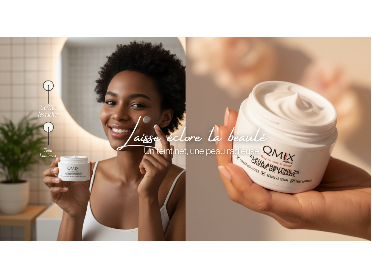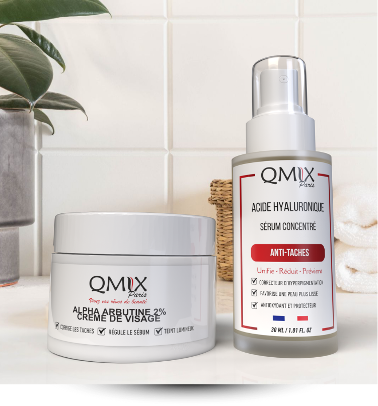 Le sérum et la crème visage QMix Paris à l’Alpha Arbutine 2% & Acide Hyaluronique sont désormais disponible.